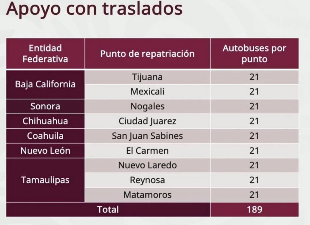 Asimismo, dijo que se han implementado 10 centros de atención a migrantes en los estados fronterizos.