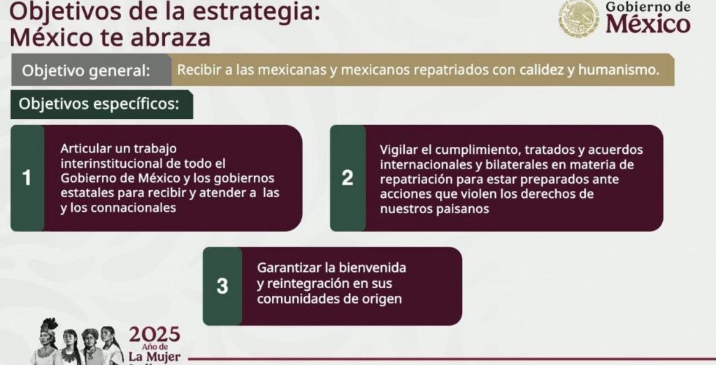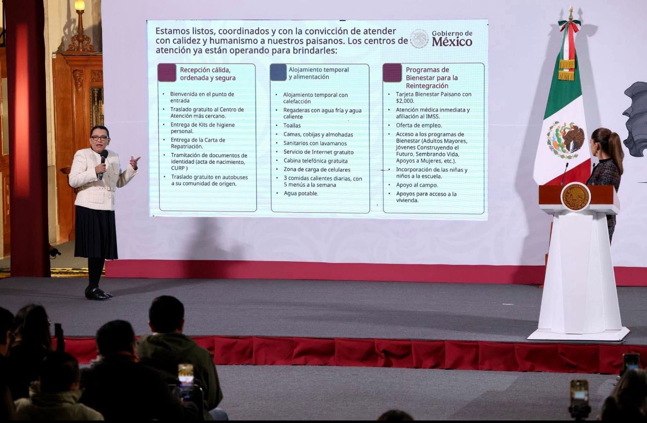 Esta mañana la secretaria de Gobernación, Rosa Icela Rodríguez destacó los servicios y programas a los que pueden acceder los paisanos que sean repatriados y recibidos en alguno de los 10 centros de atención que se implementaron en el país dentro del programa «México te abraza».