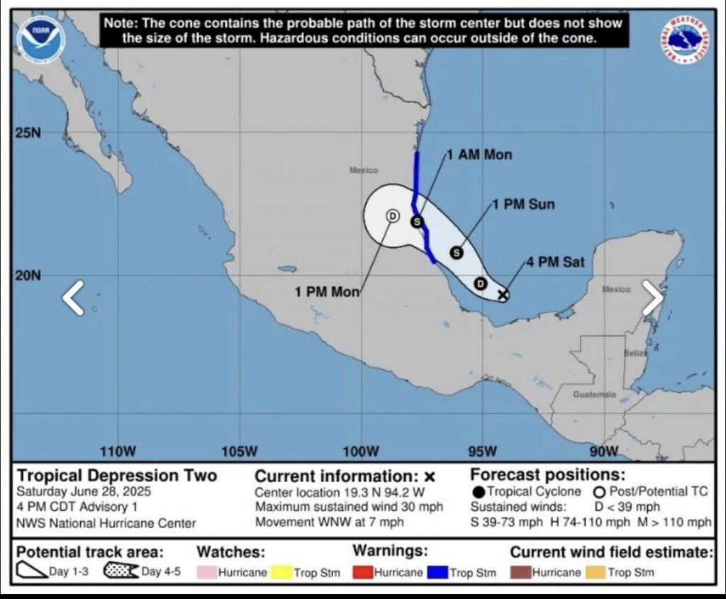 Este sábado el Centro Nacional de Huracanes emitió una alerta para varios estados del país , entre ellos SLP en la zona de la Huasteca Potosina esto por la formación de la Depresión Tropical 2, que podría intensificarse y convertirse en la tormenta tropical Barry este domingo