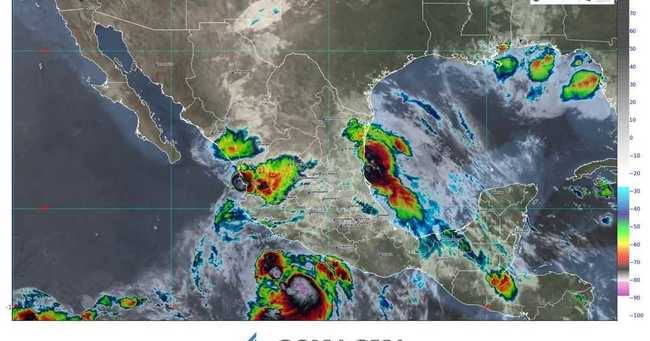Se prevén lluvias intensas de 75 a 150 mm en el este de San Luis Potosí, así como en Jalisco, Colima, Michoacán, Hidalgo, puebla, Tamaulipas, Veracruz y Oaxaca.