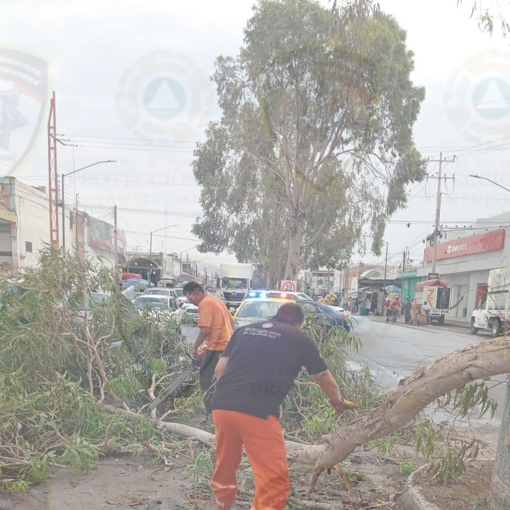 La madrugada de este miércoles una fuerte lluvia acompañada de vientos azotó gran parte de la capital potosina, así como los municipios cercanos de Soledad y Villa de Pozos.