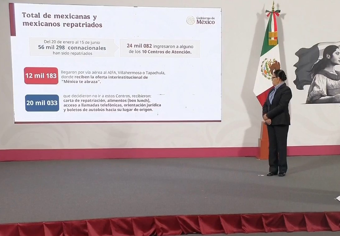 Este lunes durante la mañanera del pueblo se dio a conocer que hasta este 15 de junio han sido repatriados 56 mil 298 connacionales debido a las medidas migratorias que implementado el gobierno de Estados Unidos.