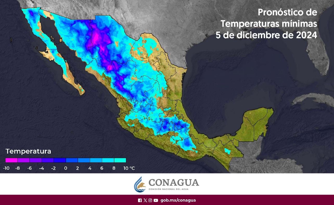 Por las mañanas se prevé ambiente de frío a muy frío en la mayor parte de la República Mexicana con heladas y banco de niebla. En el territorio potosino la temperatura se espera oscile entre los 0 y 5 grados por las mañanas.