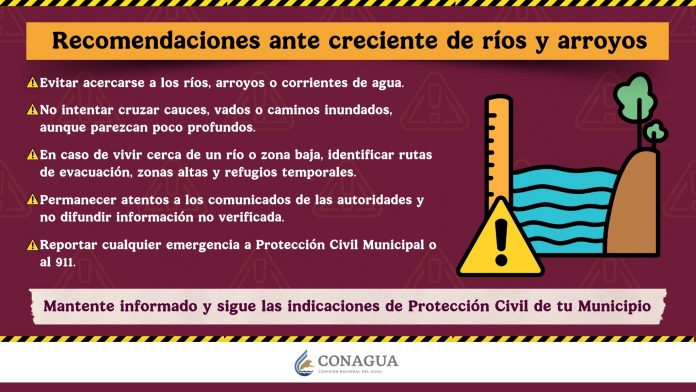 Ante esta situación, se exhorta a la población a atender los comunicados de Protección Civil de sus municipios, quienes coordinarán las acciones preventivas necesarias para salvaguardar a la población y sus bienes.
