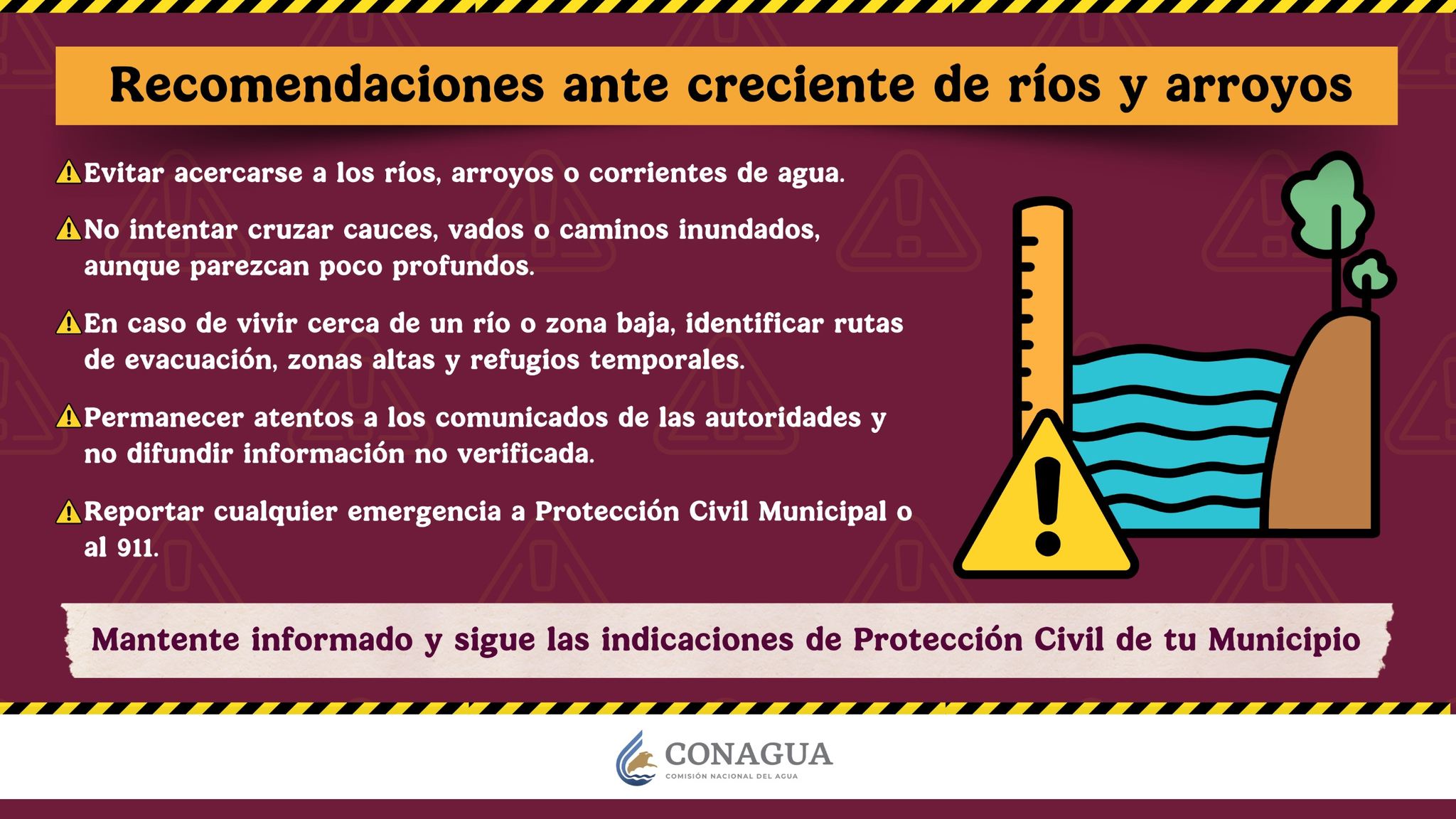 • Reportar cualquier emergencia a Protección Civil Municipal o al 911.