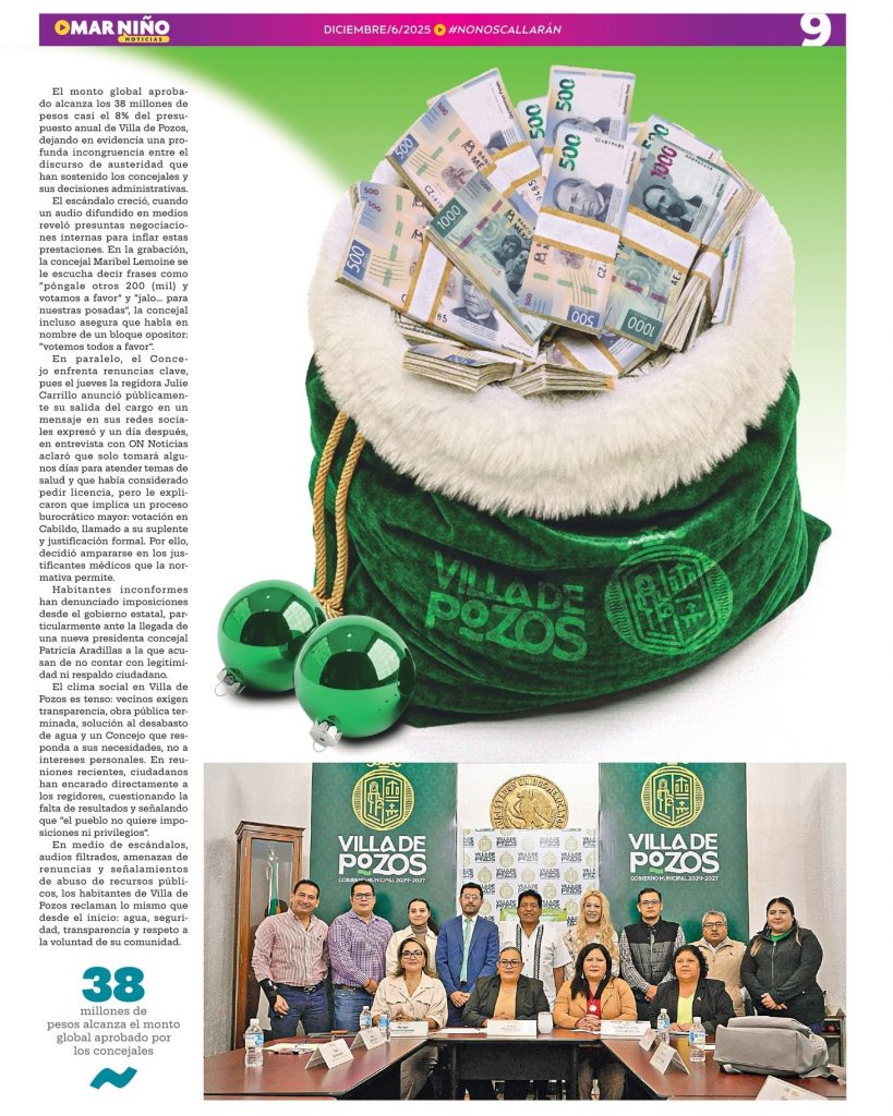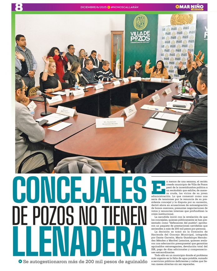 En medio de escándalos, audios filtrados, amenazas de renuncias y señalamientos de abuso de recursos públicos, los habitantes de Villa de Pozos reclaman lo mismo que desde el inicio: agua, seguridad, transparencia y respeto a la voluntad de su comunidad.