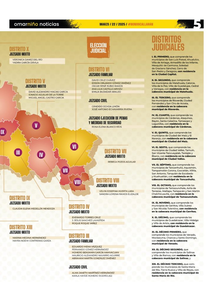 InicioSan Luis PotosíCONOCE A TUS CANDIDATOS CONOCE A TUS CANDIDATOS Por Omar Nino Fecha abril 11, 2025 Etiquetas Cuota FacebookTwitterPinterestWhatsApp De cara a elección del próximo mes de junio para elegir jueces y magistrados para el Poder Judicial, aquí te presentamos los que candidatos y candidatas de los distritos de SLP que participaran en dicha elección el domingo 1 de Junio. Artículo anteriorOTRO ACCIDENTE AÉREO EN ESTADOS UNIDOS DEJA TRES PERSONAS SIN VIDAArtículo siguienteSEGUNDO INCIDENTE EN FERIA DE VALLES, PROTECCIÓN CIVIL PERMITE QUE SIGA OPERACIÓN Te podría interesar San Luis Potosí LA UASLP REANUDA ACTIVIDADES EN TODAS SUS FACULTADES Y CAMPUS noviembre 3, 2025 San Luis Potosí FORTALECE AGRICULTURA LA CAPACIDAD DE RESPUESTA ANTE EMERGENCIAS ZOOSANITARIAS EN SLP noviembre 3, 2025 San Luis Potosí PREMIAN A LA MEJOR COMPARSA DE TANQUIÁN noviembre 3, 2025 Últimas noticias POTOSINO CON FICHA DE BÚSQUEDA ES LOCALIZADO EN MONTERREY Seguridad noviembre 4, 2025 Maltratan y expulsa a Miss México de evento de Miss Universo, la querían obligar a realizar un dinámica que no era oficial del certamen Espectáculos noviembre 4, 2025 Maltratan y expulsa a Miss México de evento de Miss Universo, la querían obligar a realizar un dinámica que no era oficial del certamen Espectáculos noviembre 4, 2025 SE COMBATIRÁ LA INSEGURIDAD EN MICHOACÁN NO CON VIOLENCIA, SI NO CON SEGURIDAD Y JUSTICIA: CSP México noviembre 4, 2025 PERÚ ROMPE RELACIONES DIPLOMÁTICAS CON MÉXICO, MÉXICO REITERA SU GOBIERNO HUMANISTA México noviembre 4, 2025 De Interés Maltratan y expulsa a Miss México de evento de Miss Universo, la querían obligar a realizar un dinámica que no era oficial del certamen noviembre 4, 2025 SE COMBATIRÁ LA INSEGURIDAD EN MICHOACÁN NO CON VIOLENCIA, SI NO CON SEGURIDAD Y JUSTICIA: CSP noviembre 4, 2025 PERÚ ROMPE RELACIONES DIPLOMÁTICAS CON MÉXICO, MÉXICO REITERA SU GOBIERNO HUMANISTA noviembre 4, 2025