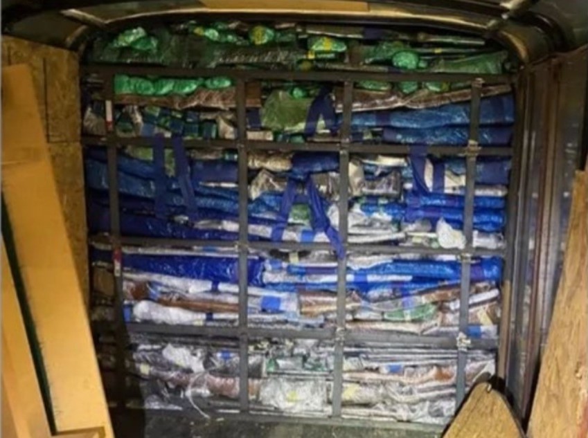 Este armamento venía escondido en un par de remolques con paredes falsas.