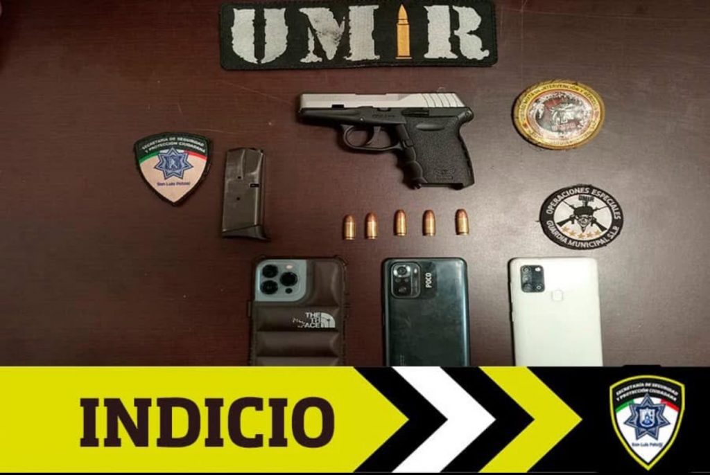 Al momento de la detención los policías descubrieron al interior del auto un arma de fuego calibre 9mm abastecida con cinco cartuchos útiles, además de que dos de los hombres tenían aliento alcohólico.