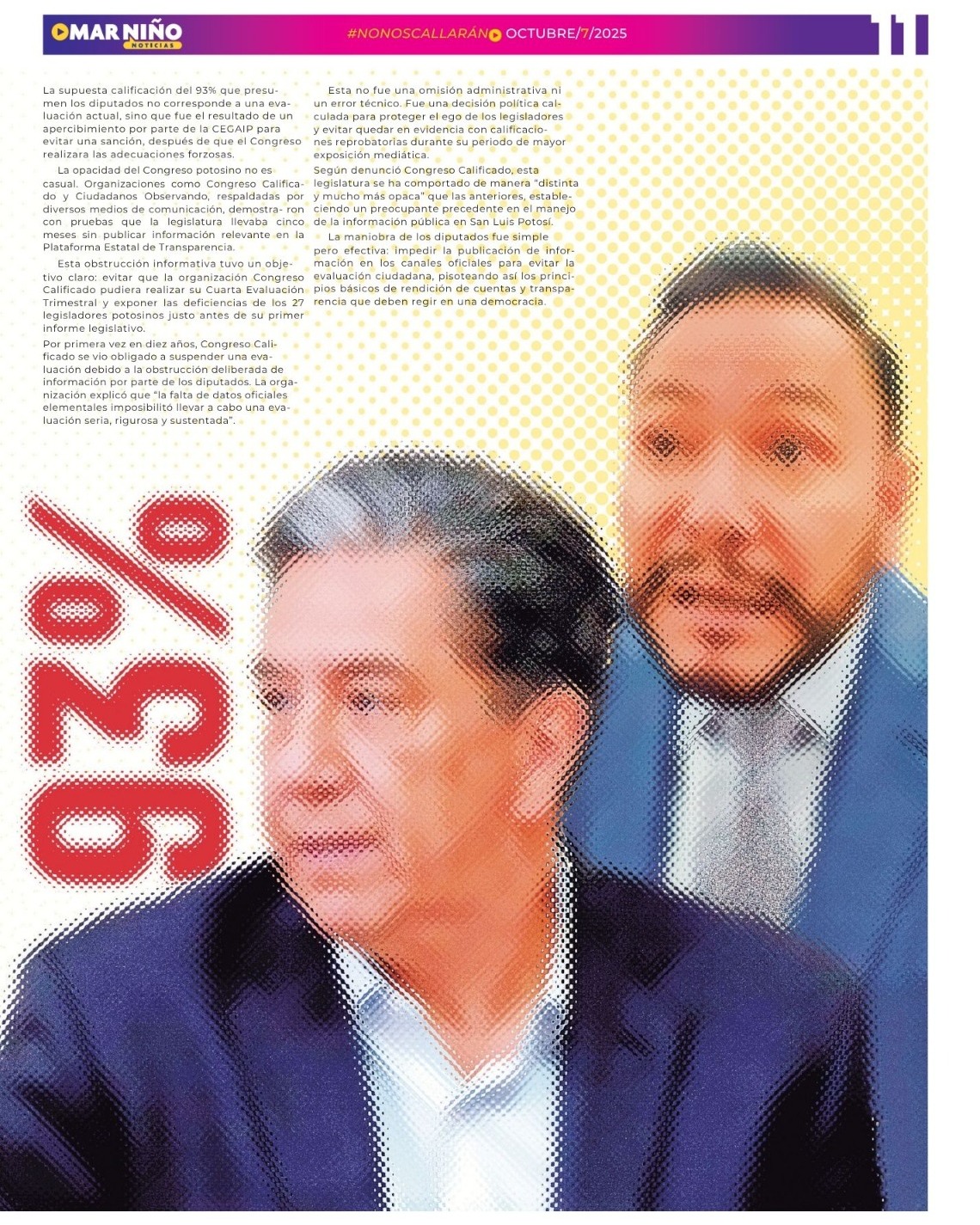 Esta obstrucción informativa tuvo un objetivo claro: evitar que la organización Congreso Calificado pudiera realizar su Cuarta Evaluación Trimestral y exponer las deficiencias de los 27 legisladores potosinos justo antes de su primer informe legislativo.