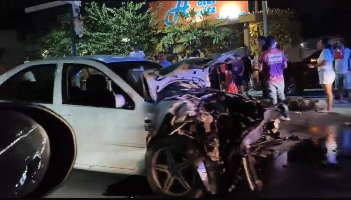El saldo de aparatoso choque fue de una madre y su hija lesionadas, así como dos hombres, entr ellos un adolescente de 17 años, quien quedó tirado en el piso tras el impacto.