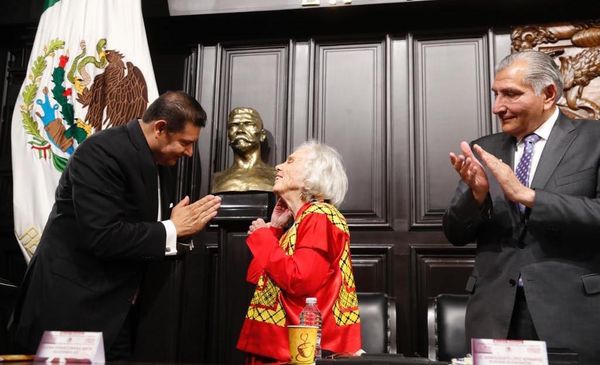 • Al recibir la Medalla Belisario Domínguez, la escritora Elena Poniatowska lamentó ausencia de AMLO.