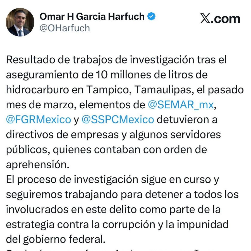 Luego del aseguramiento de más de 10 millones de litros de hidrocarburo en Tampico, Tamaulipas, la Secretaría de Seguridad y Protección Ciudadana de México informó que se detuvieron al menos a 10 personas relacionadas con este caso.