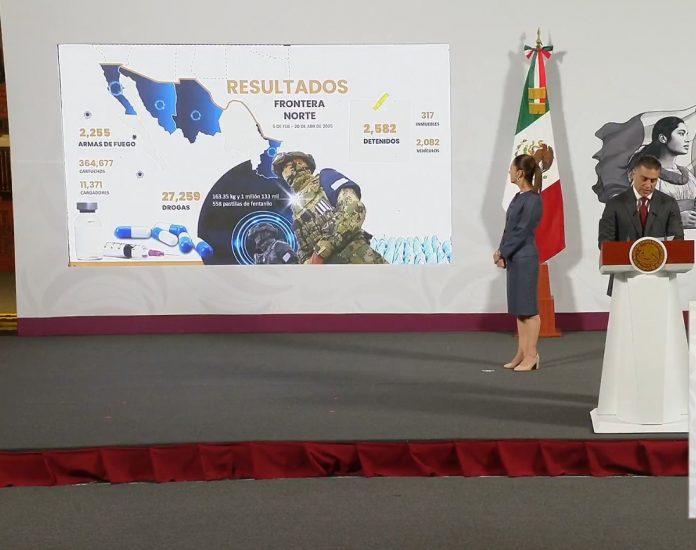 Por su parte el secretario de seguridad, Omar García Harfuch destacó la aprehensión de 18, 712 personas relacionadas con delitos de alto impacto en estos primeros 6 meses de estrategia de seguridad.