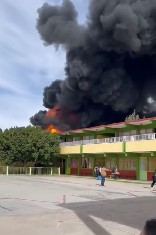 Autoridades han informado que se dio la evacuación de las escuelas, desde kínder hasta bachillerato, cercanas al incendio de la bodega de tarimas con saldo blanco.