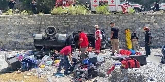 Por una falla en los frenos una camioneta particular donde viaja una familia cayó a un barranco en la peligrosa Cuesta del Socavón en Real de Catorce.