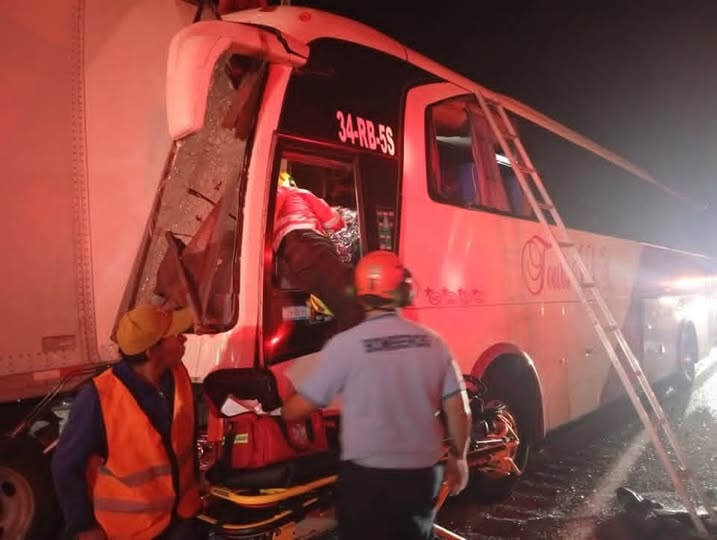 Esta madrugada se dio un fuerte choque cuando un autobús de pasajeros, proveniente de Monterrey, se impactó en la parte trasera de un tráiler a la altura del kilómetro 94, en el municipio de San Luis de la Paz, sobre la carretera SLP – Querétaro.