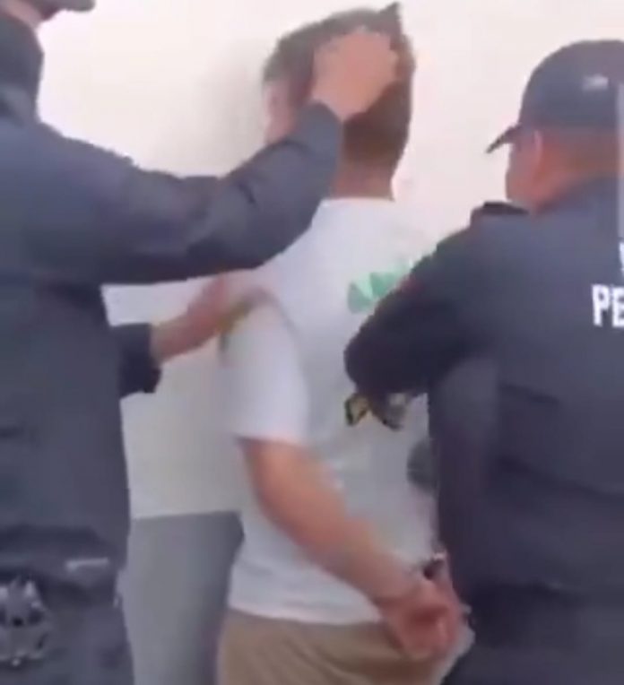 “¿Por qué chillas, eh?” Así le pegó a la mujer? ¿Sí?” le cuestionan los guardias mientras lo cachetean.
