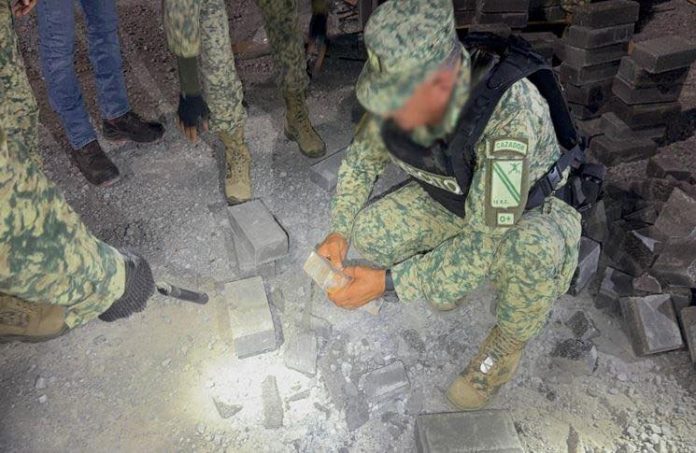 Nuevo Laredo, Tamps. – En una operación coordinada, elementos de la Guardia Nacional y el Ejército Mexicano interceptaron un millonario cargamento de drogas. Al inspeccionar un contenedor que venía de San Luis Potosí y se dirigía a Arkansas, Estados Unidos, descubrieron un total de 530 kilos de metanfetamina ocultos en 20 tarimas de piedra. El valor estimado de esta droga incautada asciende a 144 millones de pesos.
