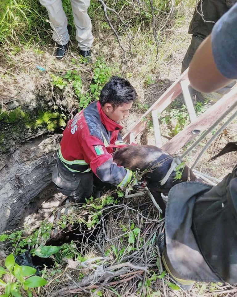 Elementos del cuerpo de Bomberos de Rioverde realizaron un emotivo rescate tras recibir el reporte de un perrito que cayó a un pozo.