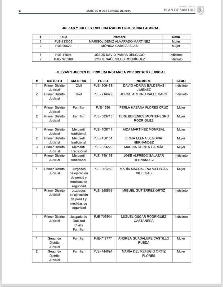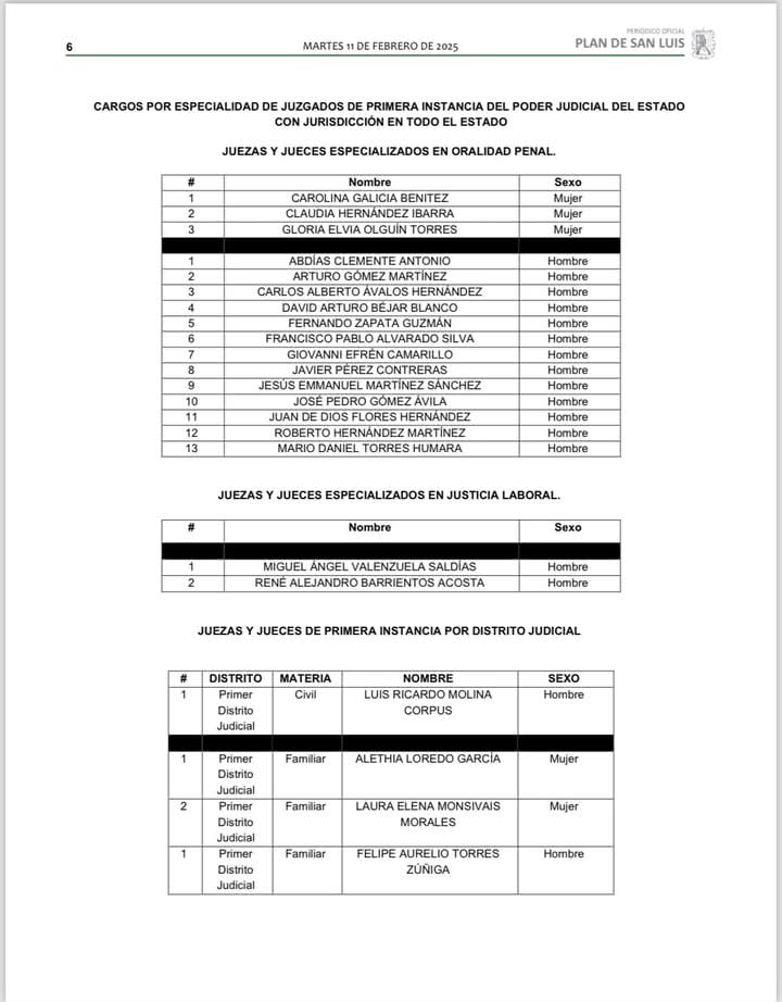 Los nombres que parecen en la lista son quienes pasaron los filtros y supuestamente cumplieron con los requisitos solicitados para ocupar uno de los cargos.