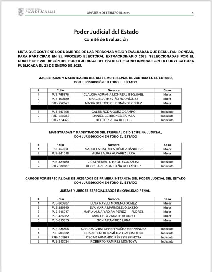 Se da a conocer la lista oficial de quienes participarán en la insaculación de este día para definir a los candidatos a los diversos puestos que se votarán para conformar el poder Judicial en el estado.