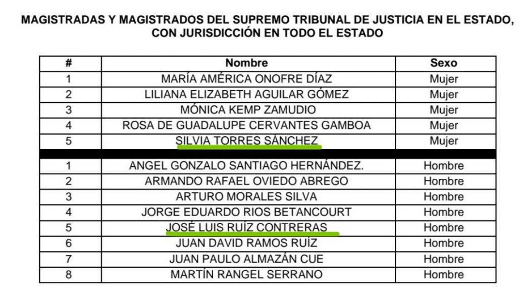 JOSÉ LUIS RUIZ CONTRERAS Y HERMANA DE GUADALUPE TORRES EN LA LISTA PARA ELECCIÓN DEL PODER JUDICIAL