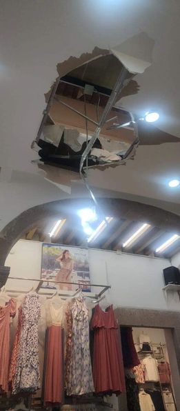 El pasado lunes 5 de mayo, el joven Cesar Gerardo, quién se desempeñaba como bodeguero en la boutique «Vertiche», fue puesto a limpiar la azotea del lugar, sin embargo, por la carga de peso y la fragilidad de las láminas, éstas se reventaron, provocando que cayera hacia el vacío, traspasando el segundo piso y cayendo hasta la planta baja, sobre los aparadores, resultando gravemente herido.