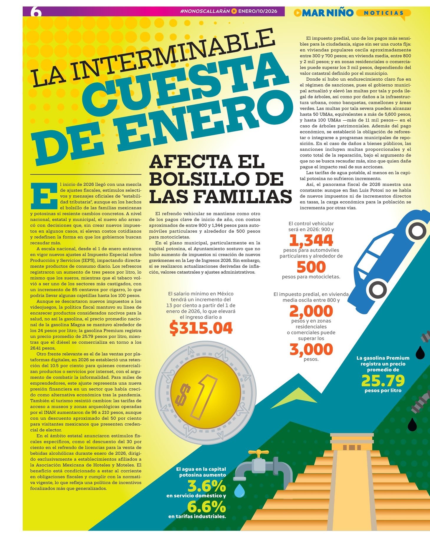 El inicio de 2026 llegó con una mezcla de ajustes fiscales, estímulos selectivos y mensajes oficiales de “estabilidad tributaria”, aunque en los hechos el bolsillo de las familias mexicanas y potosinas sí resiente cambios concretos. A nivel nacional, estatal y municipal, el nuevo año arrancó con decisiones que, sin crear nuevos impuestos en algunos casos, sí elevan costos cotidianos y redefinen la forma en que los gobiernos buscan recaudar más.