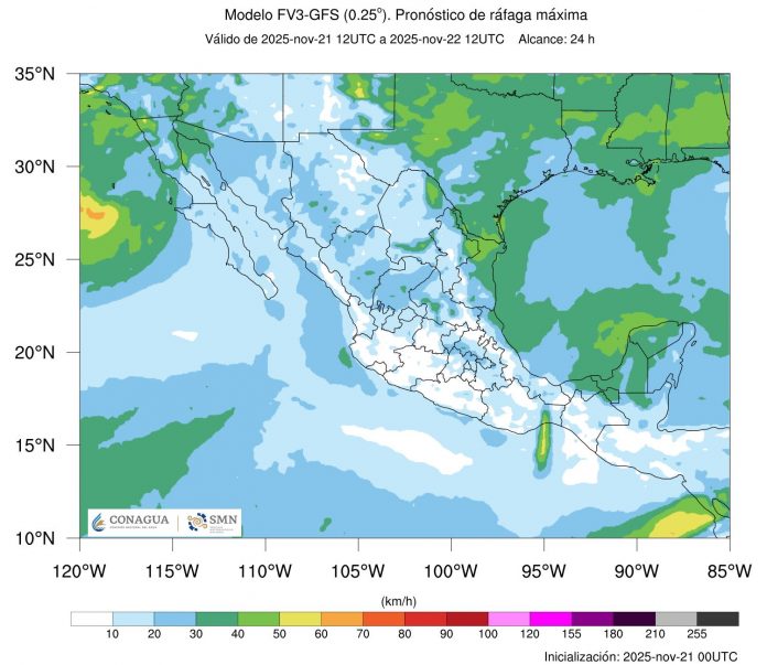 En tanto el frente frío traerá consigo también la baja en el termómetro, así como probabilidad de lluvia para estados del norte, además de Nuevo León, Tamaulipas y San Luis Potosí donde se esperan vientos de 20 a 30 km/h con rachas de 40 a 60 km/h.