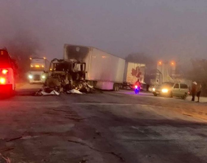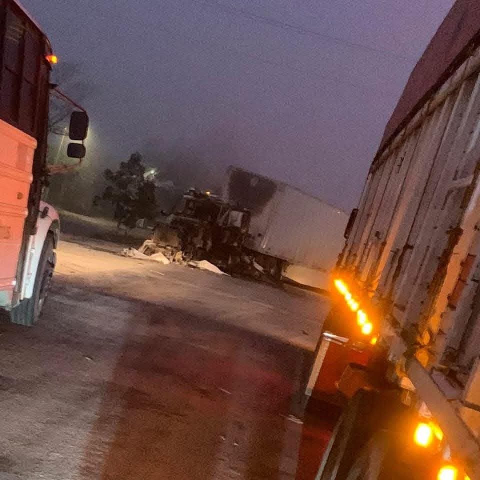 Hubo incendio de un tráiler y narcobloqueos en la carretera federal Valles-Mante.