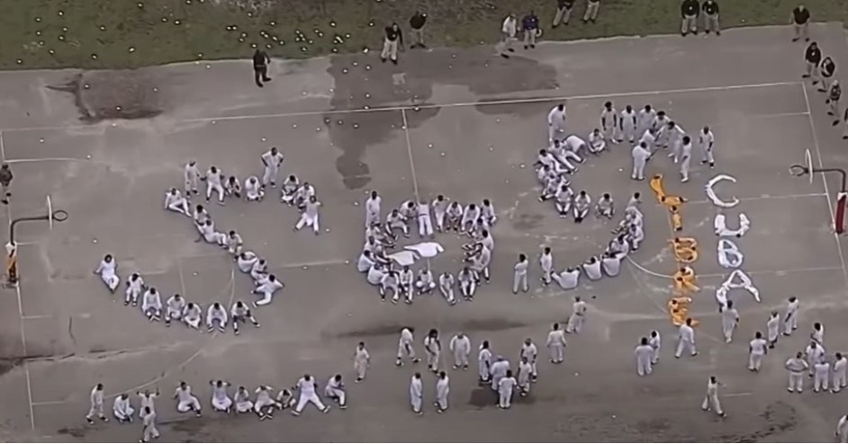 Con sus cuerpos formaron la palabra de auxilio “SOS” pues los más de 100 migrantes, en su mayoría cubanos y venezolanos, dicen estar retenidos en condiciones inhumanas pues hay una sobrecapacidad de casi el 300%.