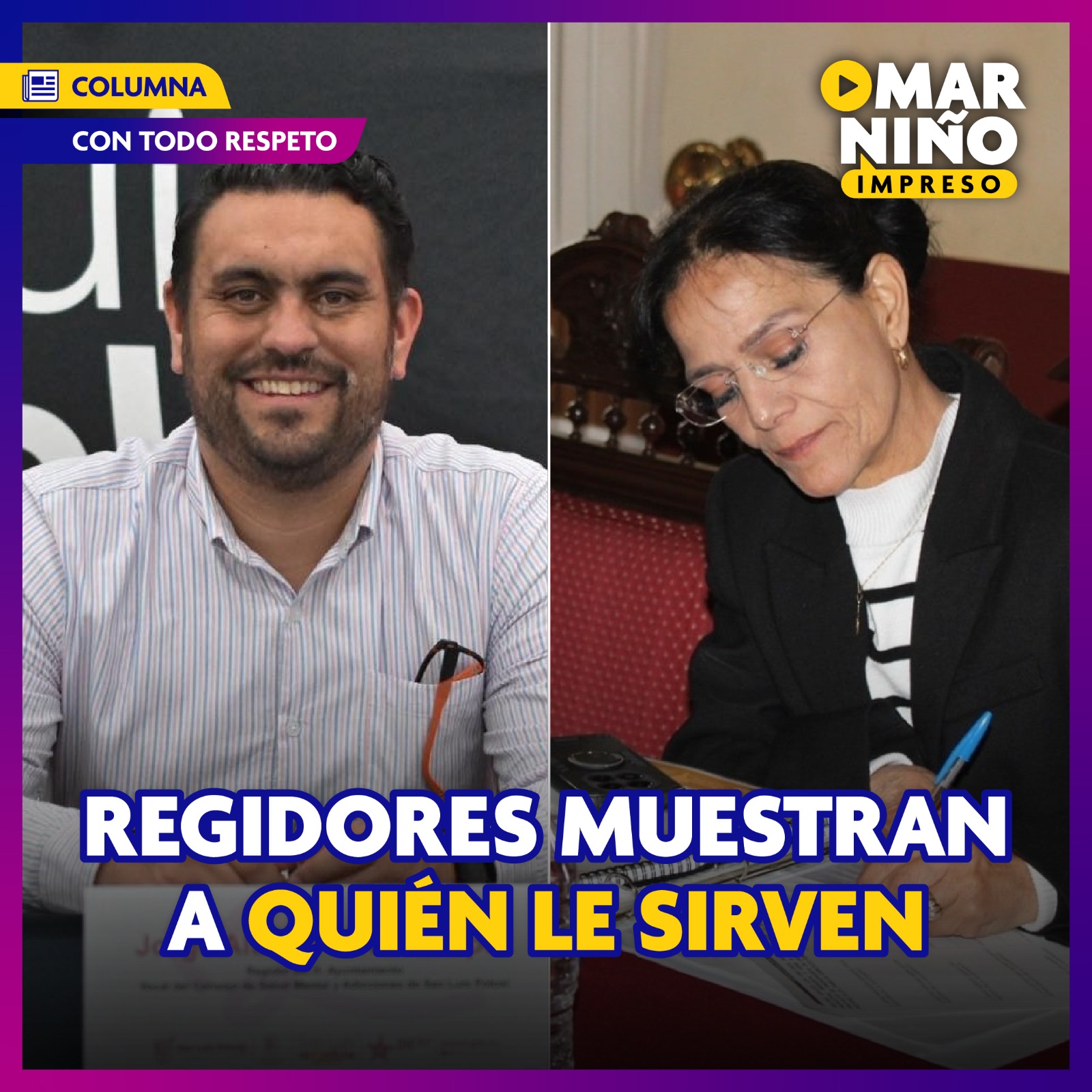 CON TODO RESPETO, Los regidores Jorge Zavala del hoy desaparecido PRD y la doctora Adriana Urbina de Movimiento Ciudadano , dejaron caer su careta de “regidores del pueblo” los dos ediles tuvieron la oportunidad de echar para atrás la “Ley Gobernadora” y ambos mostraron que están en esos puestos para obedecer a sus patrones y no para velar por los intereses del pueblo, una verdadera lástima que personas como la doctora Urbina a la que se le respetaba por su congruencia, hoy deja de lado la doctrina navista y comienza a saborear las mieles del gallardismo a cambio de sus votos en el cabildo capitalino.