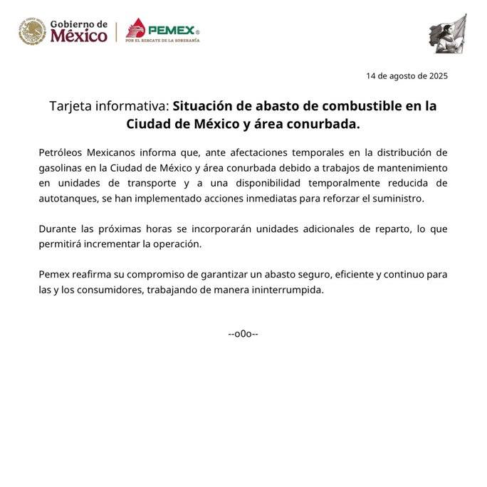 “No, no hay desabasto” de combustible aseguró esta mañana la presidenta Claudia Sheinbaum tras los rumores de desabasto de combustible en la Ciudad de México y algunos otros estados del país.