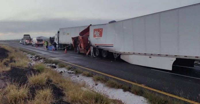 Mientras abanderaba su unidad que presentaba una falla mecánica, el conductor de un tráiler fue embestido por otro chofer de tráiler el cual lo impactó contra su propia unidad.