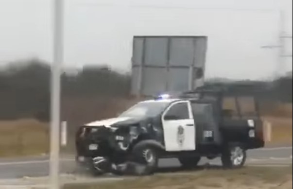 A bordo de una patrulla municipal de Rioverde, un elemento de la corporación, quien conducía a exceso de velocidad, embistió a una mujer que circulaba en una moto a la altura del entronque con la Supercarretera.