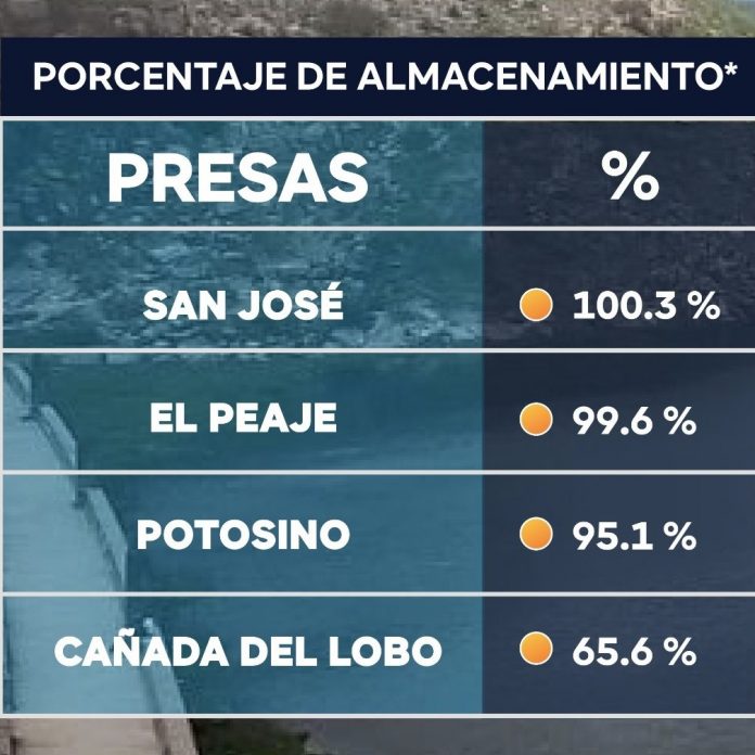 Tanto la presa San José como la presa El Peaje han llegado a su porcentaje límite de captación de agua con 100.3 % y 99.6% por ciento respectivamente.