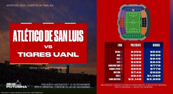 La preventa exclusiva para ABONADOS del Atlético de San Luis para el partido VS el Tigres comenzará este viernes 15 de noviembre.
