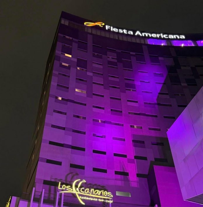 Hoteles como Fiesta Americana, SAND´S y Raddisom, iluminaron sus fachadas con luces moradas, símbolo de duelo y reconocimiento al legado del presidente y líder hotelero.