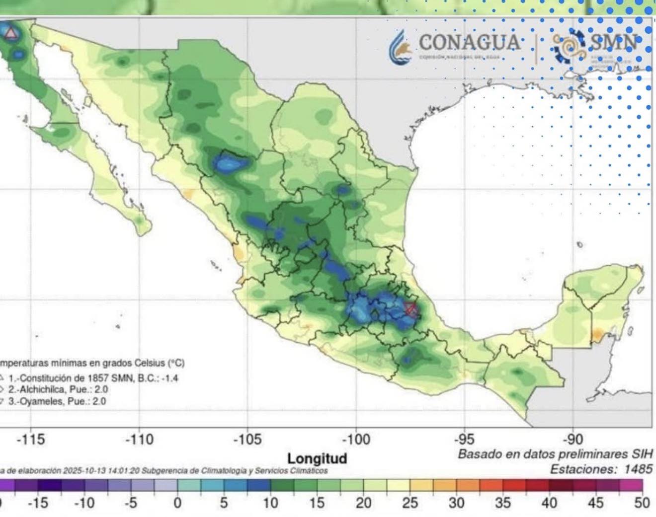 En el Altiplano y Zona Centro podrían bajar hasta los 0 °C, mientras que en la Huasteca habrá amaneceres fríos y neblina.