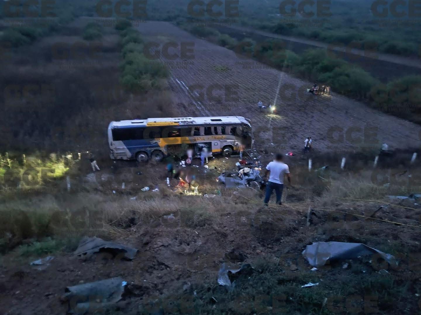 Según información confirmada por autoridades de Protección Civil y cuerpos de emergencia, el autobús transportaba a 45 personas, mientras que en el automóvil viajaban cinco tripulantes. Tras el impacto, el conductor del autobús perdió el control y la unidad volcó.