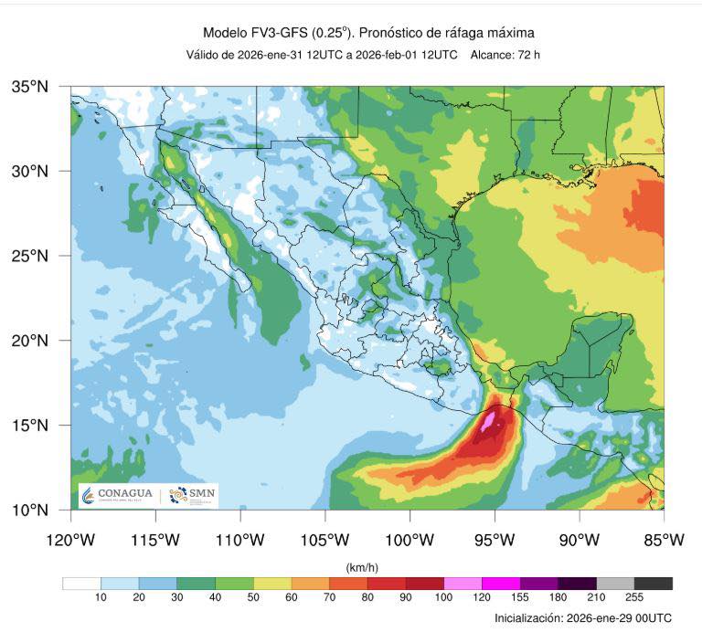 El frente frío núm. 32 recorrerá el norte, noreste y oriente de México, originando chubascos y lluvias fuertes, además la masa de aire ártico que lo impulsa propiciará descenso de temperatura en estados de la Mesa del Norte y el noreste del país; así como evento de “Norte” muy fuerte a intenso en el litoral del golfo de México.