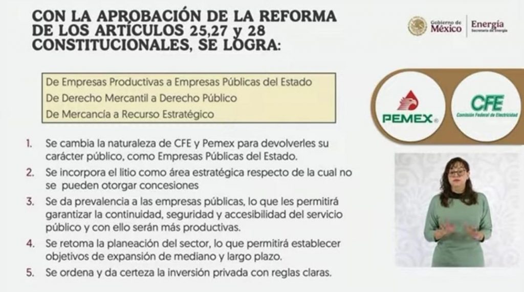En la mañanera del pueblo de la Presidenta Claudia Sheinbaum firmó hoy el decreto que devuelve al pueblo a PEMEX y a la CFE, luego de ser aprobada por ambas cámaras y los congresos locales. Se trata de una reforma importante que devuelve al pueblo las empresas más productivas e importantes del país.