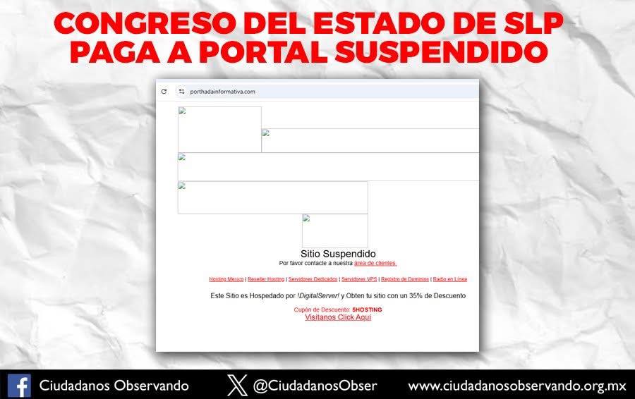 El Congreso del Estado de San Luis Potosí ha pagado por supuestas publicaciones de trabajo legislativo a un portal web que aparece como suspendido.