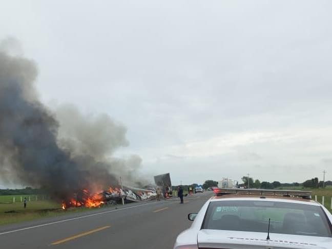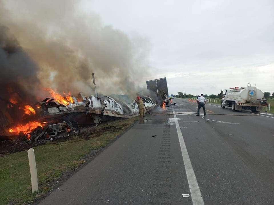 • El choque entre un tráiler y una camioneta provoco un incendio en done murieron al menos 26 personas.