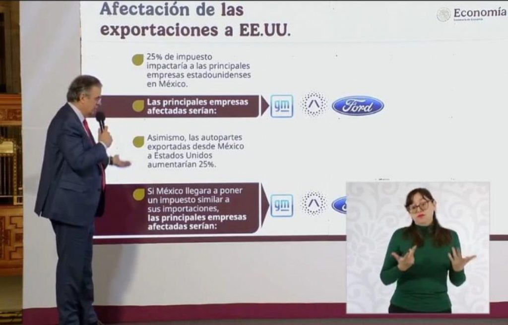 Ebrard también puntualizó que entre las empresas afectadas por las medidas estadounidenses podrían estar las automotrices como General Motors y Ford pues son de las principales exportadoras.