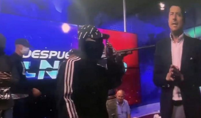 Las personas armadas mostraban su arsenal, hasta que las luces del set se apagaron. La señal en vivo continuó transmitiendo los disparos, gritos y lamentos que se escuchaban fuera de cámara.