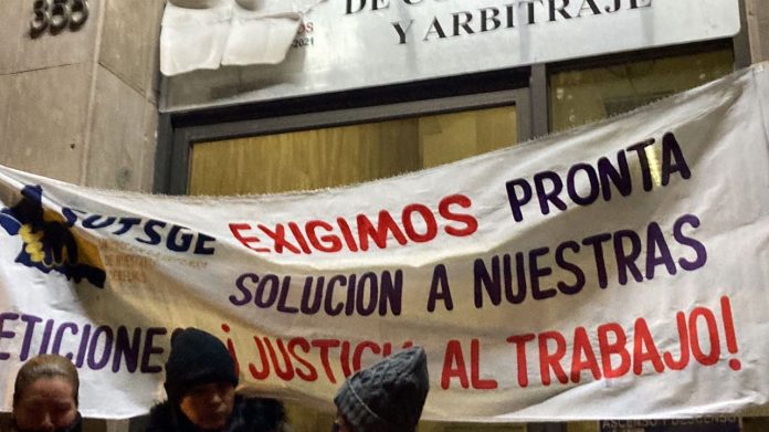 Personal de El Sindicato Único de Trabajadores al Servicio del Gobierno del Estado protestan frente al Tribunal Estatal de lo Contencioso Administrativo (TECA), aseguran que este organismo se sigue negando a aceptar la representatividad de la líder del sindicato.
