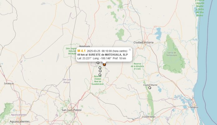 InicioMéxicoTIEMBLA EN MATEHUALA TIEMBLA EN MATEHUALA Por Omar Nino Fecha marzo 25, 2025 Etiquetas Cuota FacebookTwitterPinterestWhatsApp Esta mañana se reportó un sismo de 4.1 de magnitud en Matehuala. El movimiento se dio a las 8:10 am a 69 km al sureste del municipio. Hasta el momento no se reporta ningún daño. Artículo anteriorNO PROCEDIÓ EL DESAFUERO CONTRA CUAUHTÉMOC BLANCOArtículo siguienteSECRETARIO DE SEGURIDAD PRESENTA RENUNCIA Te podría interesar México COMIENZAN A IMPLEMENTARSE ALBERGUES POR PRESENCIA DE FRÍO noviembre 5, 2025 México SE COMBATIRÁ LA INSEGURIDAD EN MICHOACÁN NO CON VIOLENCIA, SI NO CON SEGURIDAD Y JUSTICIA: CSP noviembre 4, 2025 México PERÚ ROMPE RELACIONES DIPLOMÁTICAS CON MÉXICO, MÉXICO REITERA SU GOBIERNO HUMANISTA noviembre 4, 2025 Últimas noticias COMIENZAN A IMPLEMENTARSE ALBERGUES POR PRESENCIA DE FRÍO México noviembre 5, 2025 POTOSINO CON FICHA DE BÚSQUEDA ES LOCALIZADO EN MONTERREY Seguridad noviembre 4, 2025 POTOSINO CON FICHA DE BÚSQUEDA ES LOCALIZADO EN MONTERREY Seguridad noviembre 4, 2025 Maltratan y expulsa a Miss México de evento de Miss Universo, la querían obligar a realizar un dinámica que no era oficial del certamen Espectáculos noviembre 4, 2025 SE COMBATIRÁ LA INSEGURIDAD EN MICHOACÁN NO CON VIOLENCIA, SI NO CON SEGURIDAD Y JUSTICIA: CSP México noviembre 4, 2025 De Interés POTOSINO CON FICHA DE BÚSQUEDA ES LOCALIZADO EN MONTERREY noviembre 4, 2025 Maltratan y expulsa a Miss México de evento de Miss Universo, la querían obligar a realizar un dinámica que no era oficial del certamen noviembre 4, 2025 SE COMBATIRÁ LA INSEGURIDAD EN MICHOACÁN NO CON VIOLENCIA, SI NO CON SEGURIDAD Y JUSTICIA: CSP noviembre 4, 2025