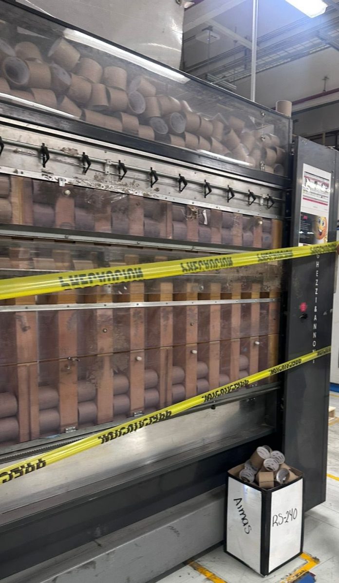 Durante la inspección, se detectó que dicha cortadora, tenía algunas inconsistencias, por lo que se le colocaron sellos y cinta que impedide su uso.